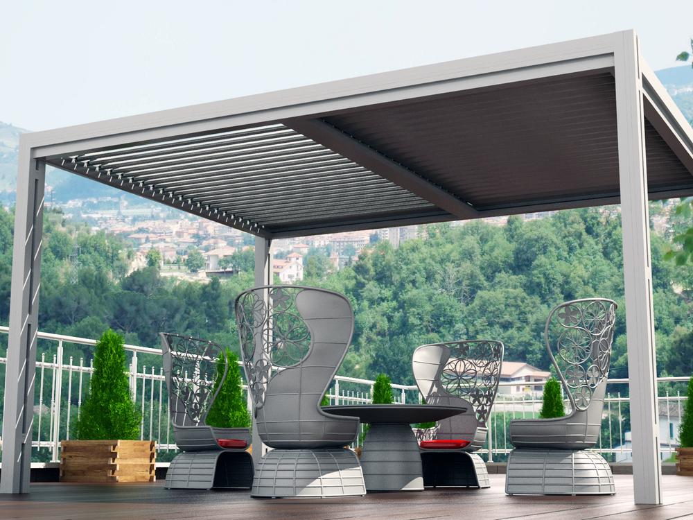 Πέργκολα αλουμινίου με ρυθμιζόμενες περσίδες για έλεγχο φωτός και αερισμού